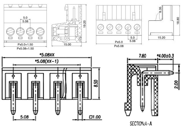 5 Pin 5.08mm Pitch Plug-in Screw PCB Terminal Block Connector Right Angle