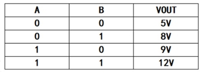 On the front of the PCB , you can see the words marked A \ B . Use the electric soldering iron to change the on and off of the character next to the character to change the output voltage. In the replacement , 0 means replacement , 1 means alternation