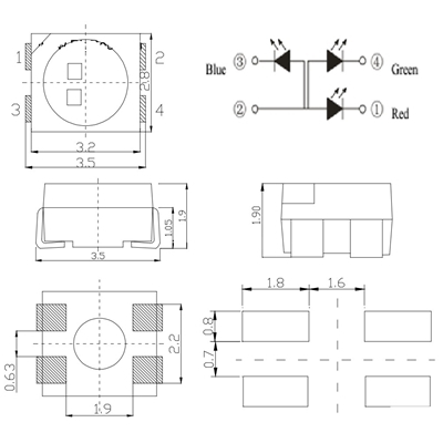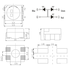 Red -Green- Blue color LED Indication - Discrete Red 2.0V , Green 3.0V, Blue 3.0V