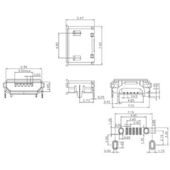 Micro USB 2.0 B socket connector, surface mount type for PCB Mount.