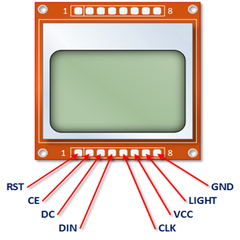 Consists of Philips PCD8544 interface chip for easy interfacing