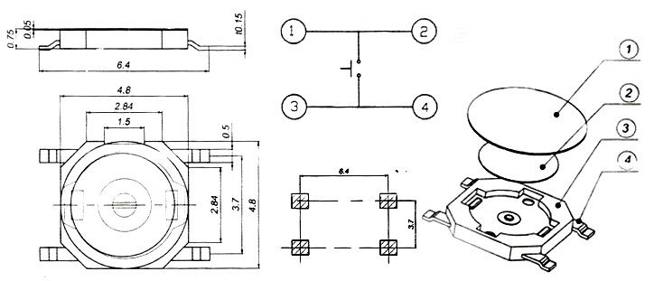 Nút Nhấn màng micro 4.8x4.8x0.5mm SMD