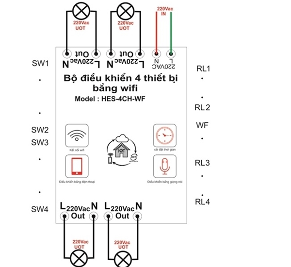 Bộ Điều Khiểu WIFI 4 Thiết Bị HTC-4CH WF-220VAC