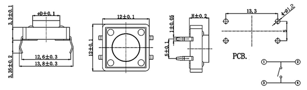Nút Nhấn 12A 12x12x5mm 4 Chân |
